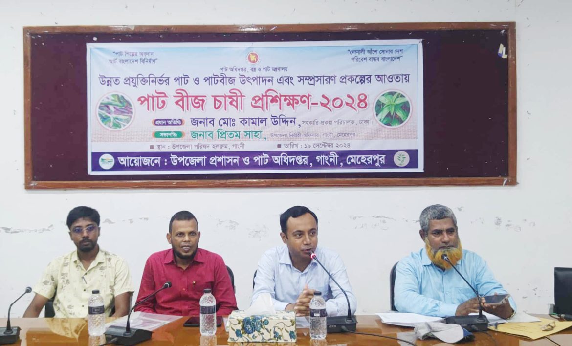 গাংনী উপজেলা নির্বাহী অফিসার প্রীতম সাহার সভাপতিত্বে প্রধান অতিথি ছিলেন পাট অধিদপ্তরের সহকারি প্রকল্প পরিচালক কামাল উদ্দিন। উপ-সহকারী পাট উন্নয়ন কর্মকর্তা মেহেদী হাসানের সঞ্চালনায় অনুষ্ঠানে বিশেষ অতিথি হিসেবে চাষিদের উদ্দেশ্যে বক্তব্য রাখেন মেহেরপুর জেলা পাট উন্নয়ন কর্মকর্তা আ ক ম হারুন অর রশীদ। উপজেলার বিভিন্ন গ্রামের ৭৫ জন চাষী এ প্রশিক্ষণে অংশ নেন।