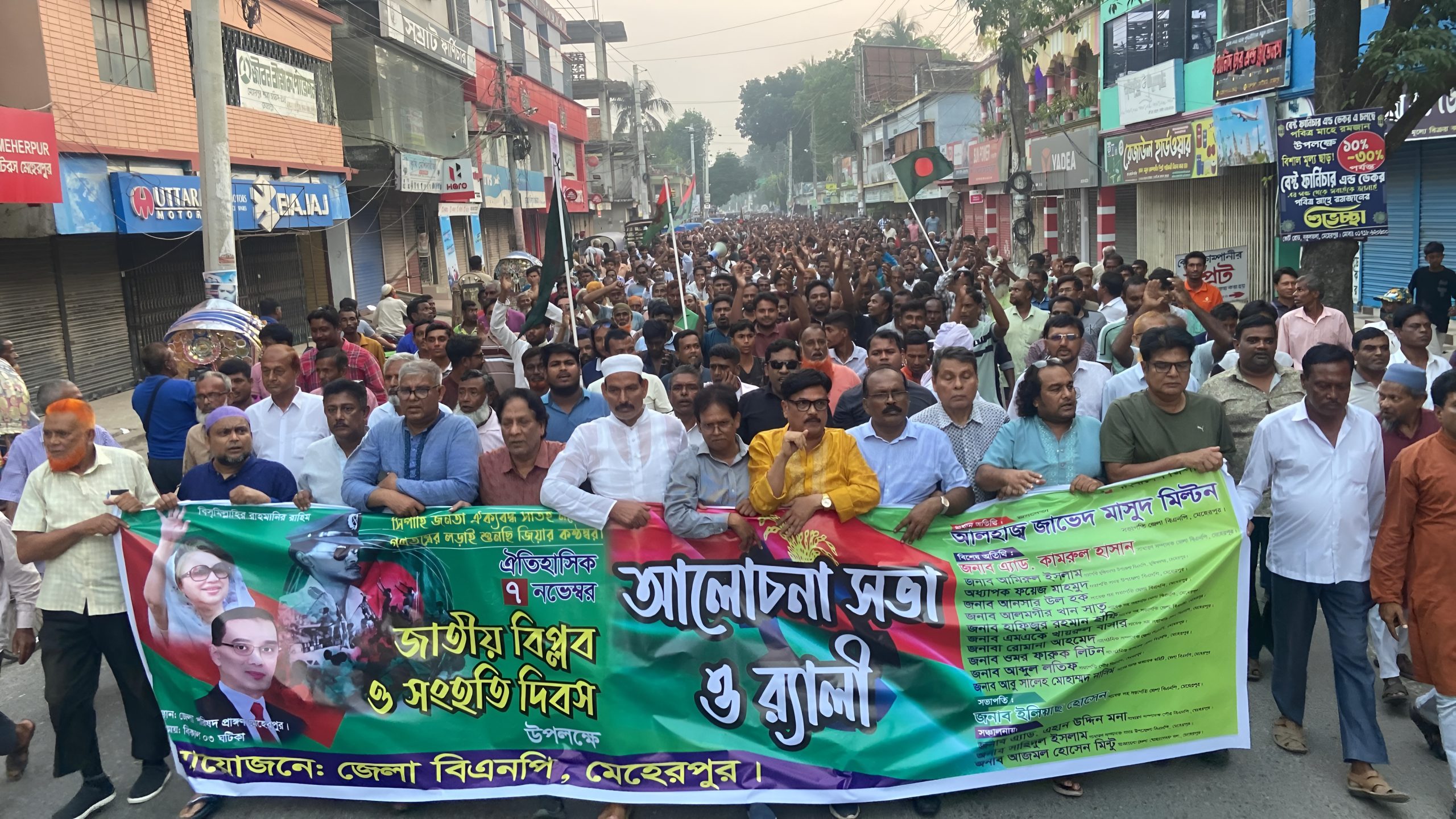 মেহেরপুর ও গাংনীতে পালিত হয়েছে জাতীয় বিপ্লব ও সংহতি দিবস। তবে ঐক্যের এই দিনে মেহেরপুর জেলা বিএনপির ভেতরে দেখা গেছে স্পষ্ট বিভক্তি। জেলা বিএনপির নেতৃত্বাধীন একটি অংশ ও বিএনপির মনোনীত প্রার্থী মাসুদ অরুণের অনুসারীরা পৃথকভাবে দিবসটি পালন করেছেন।