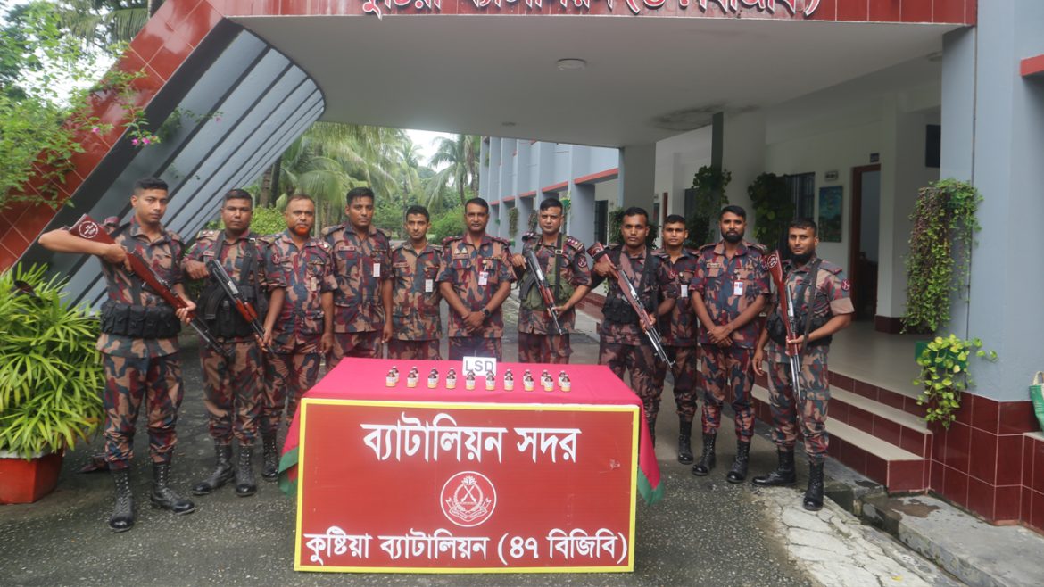 ৪৭ বিজিবির অধিনায়ক লেফটেন্যান্ট কর্নেল মো. মাহবুব মুর্শেদ রহমান এক সংবাদ বিজ্ঞপ্তিতে জানান, সুনির্দিষ্ট গোয়েন্দা তথ্যের ভিত্তিতে জানা যায়, পিরোজপুর থেকে ছেড়ে আসা একটি যাত্রীবাহী বাসে করে এলএসডির একটি চালান রাজশাহী আসছে। এরই পরিপ্রেক্ষিতে অধিনায়কের দিকনির্দেশনায় সহকারী পরিচালক মো. জাকিরুল ইসলামের নেতৃত্বে ব্যাটালিয়ন সদরের বিশেষ টহলদল কুষ্টিয়া জেলার মিরপুর থানার গোবিন্দপুর হাইওয়ে রোডের ওপর অবস্থান গ্রহণ করে। দুপুর আড়াইটার দিকে পিরোজপুর থেকে রাজশাহীগামী ‘মেট্রোপলিটন পরিবহন’ এর একটি বাস মিরপুর উপজেলার গোবিন্দপুর আসলে বিজিবি টহলদল বাসটি থামিয়ে তল্লাশি শুরু করে। এসময় ৫০ এমএল এর ২০ বোতল ভারতীয় এলএসডি উদ্ধার করে। উদ্ধার করা এলএসডির আনুমানিক বাজারমূল্য ১০ কোটি ৪০ লাখ টাকা।