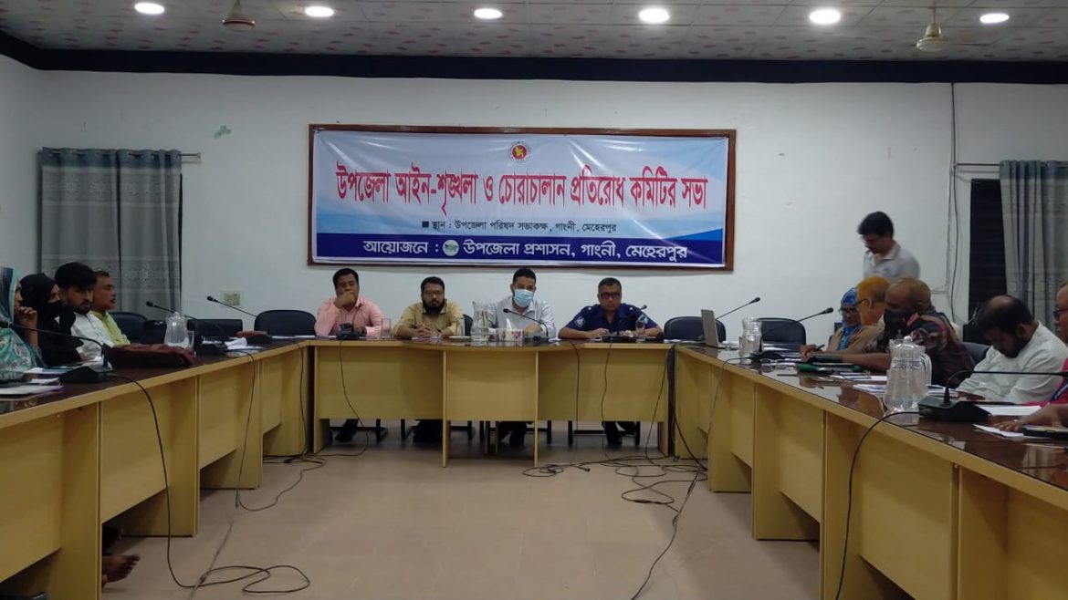 মেহেরপুরের গাংনী উপজেলা আইনশৃঙ্খলা ও চোরাচালান প্রতিরোধ কমিটির সভা অনুষ্ঠিত বৃহস্পতিবার সকাল সাড়ে ১০ টার দিকে উপজেলা পরিষদ সভাকক্ষে অনুষ্ঠিত হয়।