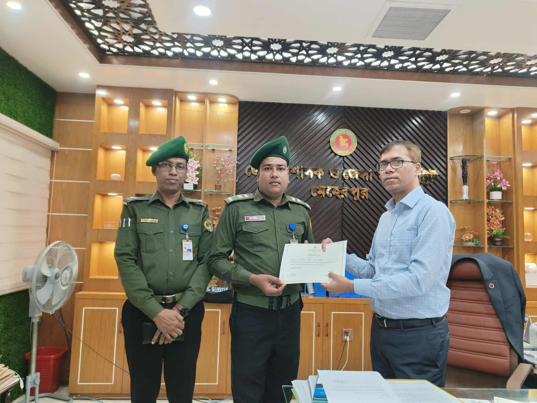 মেহেরপুরের গাংনী উপজেলার মটমুড়া গ্রামের কালী মন্দির পাড়ার বাঁশবাগান থেকে নবজাতক উদ্ধারের ঘটনায় বীরত্বের স্বীকৃতি হিসেবে আনসার সদস্য হোসাইনকে সংবর্ধনা ও পুরস্কার প্রদান করেছেন মেহেরপুর জেলা প্রশাসক ড. মোহাম্মদ আব্দুস সালাম।