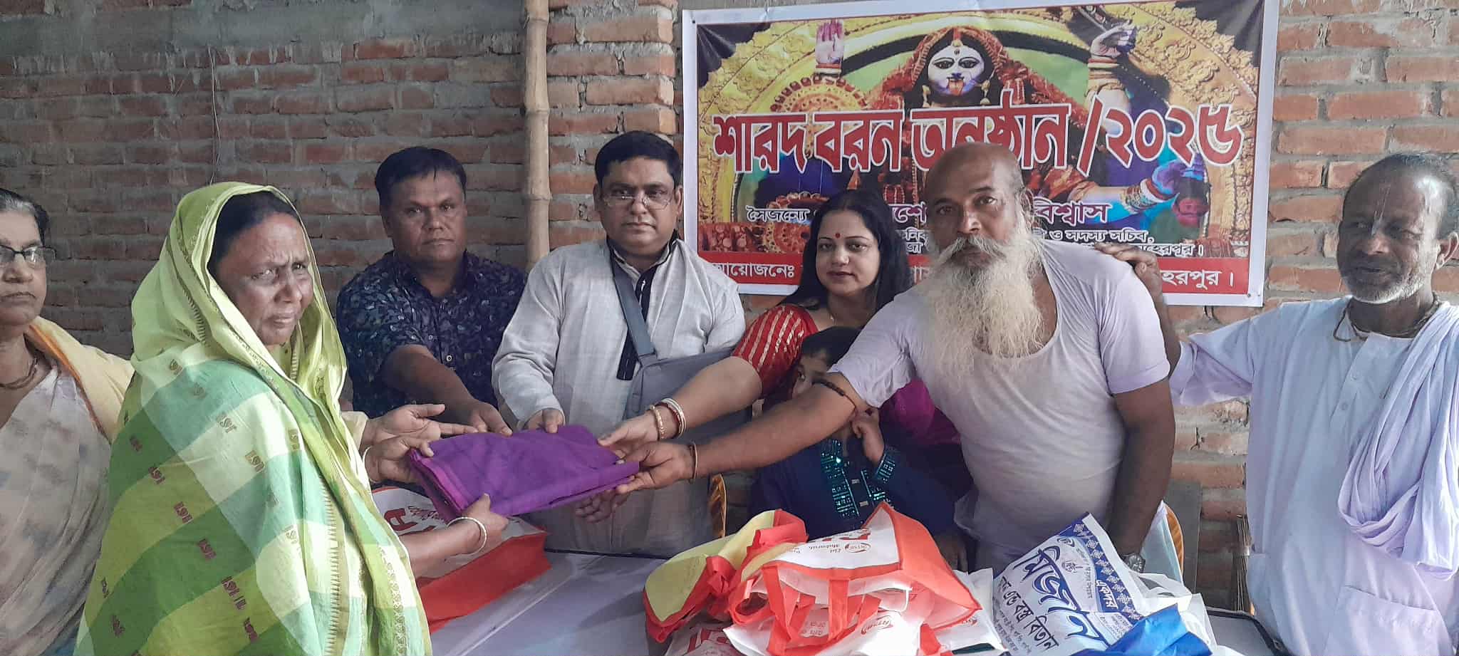 অনুষ্ঠানে হিন্দু ধর্মাবলম্বী এক শতাধিক পরিবারের মাঝে বস্ত্র বিতরণ করা হয়। অনুষ্ঠানের সভাপতিত্ব করেন রেখা রাণী বিশ্বাস।