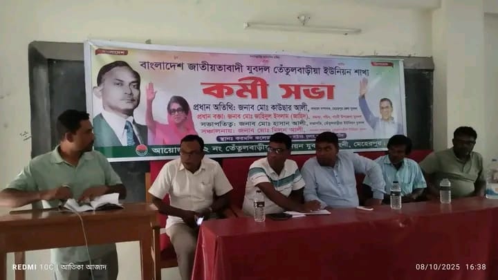 মেহেরপুরের গাংনী উপজেলার তেঁতুলবাড়ীয়া ইউনিয়ন জাতীয়তাবাদী যুবদলের উদ্যোগে এক কর্মী সভা অনুষ্ঠিত হয়েছে। সংগঠনকে আরও সুসংগঠিত ও শক্তিশালী করার লক্ষ্যে বুধবার (৮ অক্টোবর) বিকেলে করমদী কলেজ প্রাঙ্গণে এ কর্মী সভার আয়োজন করা হয়।