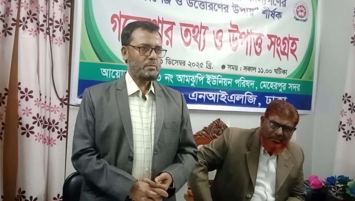মেহেরপুর সদর উপজেলার আমঝুপি ইউনিয়ন পরিষদের উদ্যোগে, এনআইএলজির সহযোগিতায় ‘গ্রাম পুলিশ বাহিনী নারী সদস্যদের চ্যালেঞ্জ ও উত্তরণের উপায়’ শীর্ষক গবেষণা তথ্য ও উপাত্ত সংগ্রহ কর্মশালা অনুষ্ঠিত হয়েছে। বুধবার সকাল বেলা আমঝুপি ইউনিয়ন পরিষদ মিলনায়তনে এ কর্মশালার আয়োজন করা হয়।