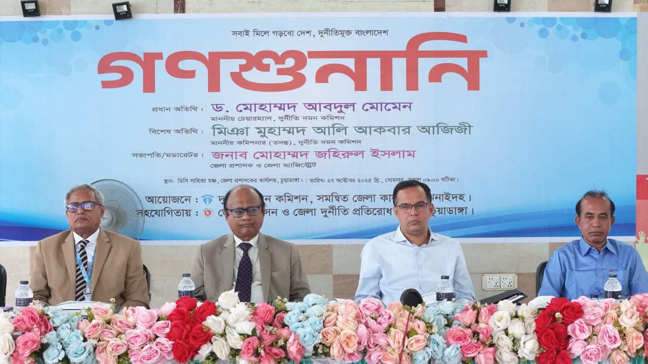 সোমবার সকালে শুরু হওয়া চুয়াডাঙ্গার ডিসি সাহিত্য মঞ্চে দুদকের গণশুনানি অনুষ্ঠানে প্রধান অতিথির বক্তব্যে এসব কথা বলেন তিনি। শুনানি শেষ হয় এদিন বেলা তিনটায়।