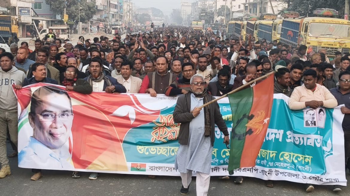 বিএনপির ভারপ্রাপ্ত চেয়ারম্যান তারেক রহমানের স্বদেশ প্রত্যাবর্তন উপলক্ষে মেহেরপুরের গাংনী উপজেলায় আনন্দ শোভাযাত্রা অনুষ্ঠিত হয়েছে।