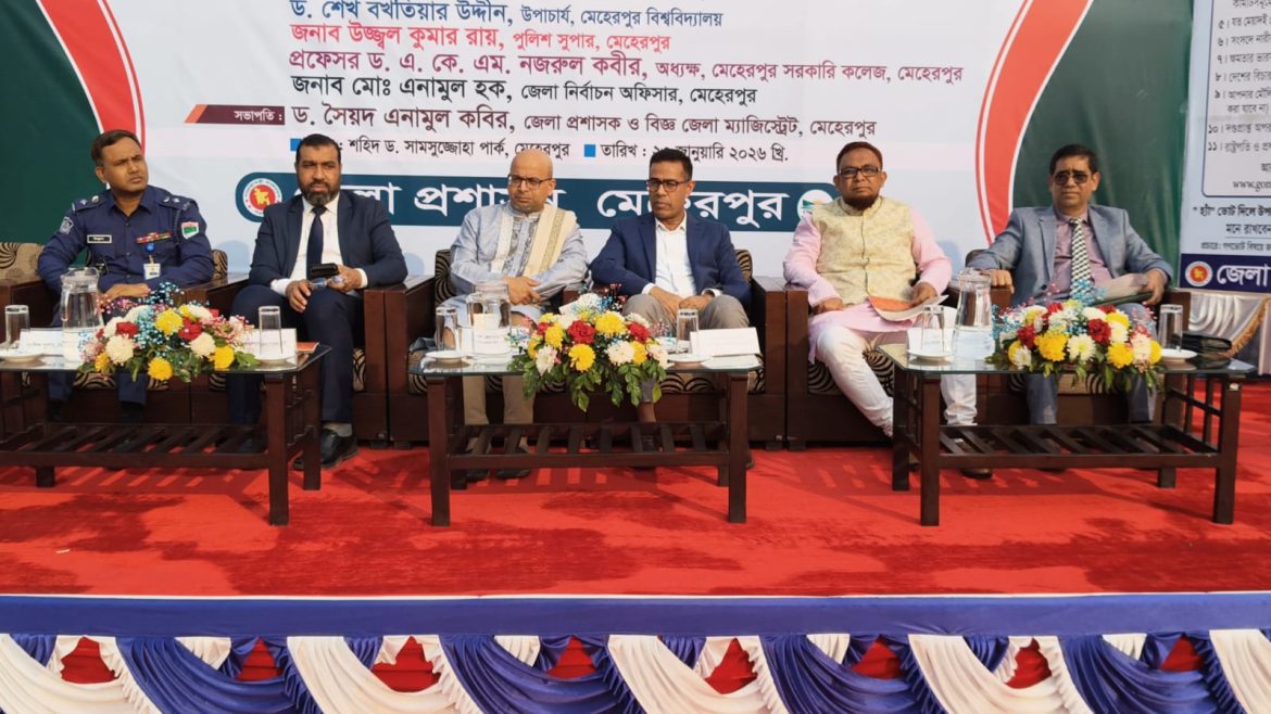 বিশেষ অতিথি হিসেবে বক্তব্য রাখেন প্রধান উপদেষ্টার বিশেষ সহকারী (ঐক্যমত) মনির হায়দার, মেহেরপুর বিশ্ববিদ্যালয়ের উপাচার্য ড. শেখ বখতিয়ার উদ্দীন, মেহেরপুরের পুলিশ সুপার উজ্জ্বল কুমার রায়, মেহেরপুর সরকারি কলেজের অধ্যক্ষ প্রফেসর ড. এ. কে. এম. নজরুল কবীর এবং জেলা নির্বাচন কর্মকর্তা এনামুল হক।