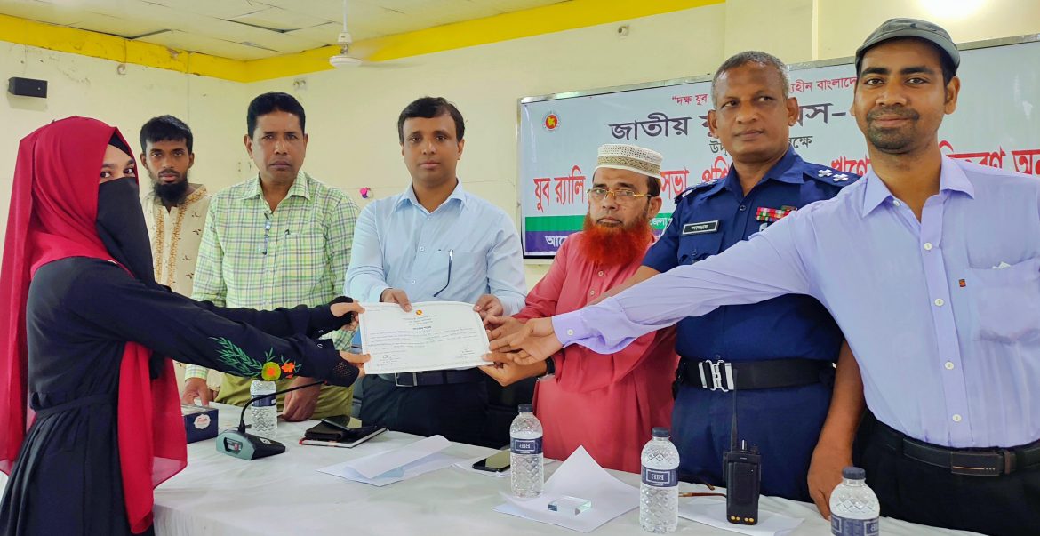 উপজেলা যুব উন্নয়ন কর্মকর্তা রকিব উদ্দিনের সভাপতিত্বে এবং উপজেলা সহকারী যুব উন্নয়ন কর্মকর্তা জাফর ইকবাল এর সঞ্চালনায়, আলোচনা সভা, প্রশিক্ষণ সনদ ও চেক বিতরণ অনুষ্ঠানে প্রধান অতিথি হিসেবে উপস্থিত ছিলেন, উপজেলা নির্বাহী অফিসার খাইরুল ইসলাম।