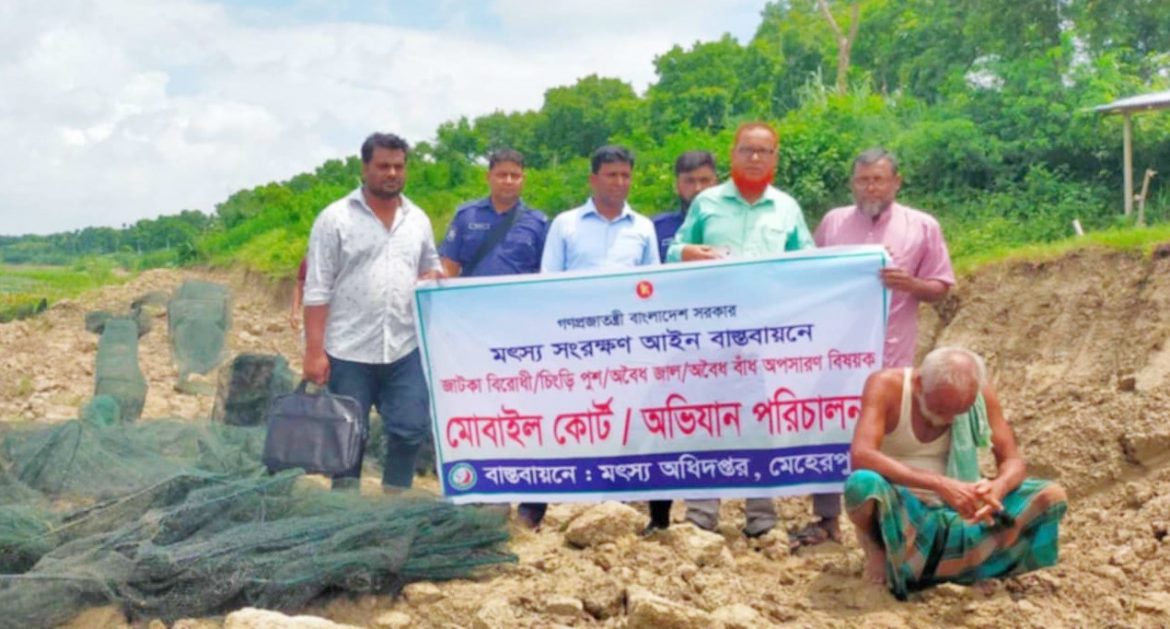 জেলা মৎস্য অফিসার (ভারপ্রাপ্ত মৎস্য অফিসার মুজিবনগর) মীর মোহাম্মদ জাকির হোসেন এর নেতৃত্বে অভিযানে ভ্রাম্যমান আদালত পরিচালনা করেন, মুজিবনগর উপজেলা সহকারী কমিশনার (ভূমি) ও নির্বাহী ম্যাজিস্ট্রেট নাজমুস সাদাত রত্ন।