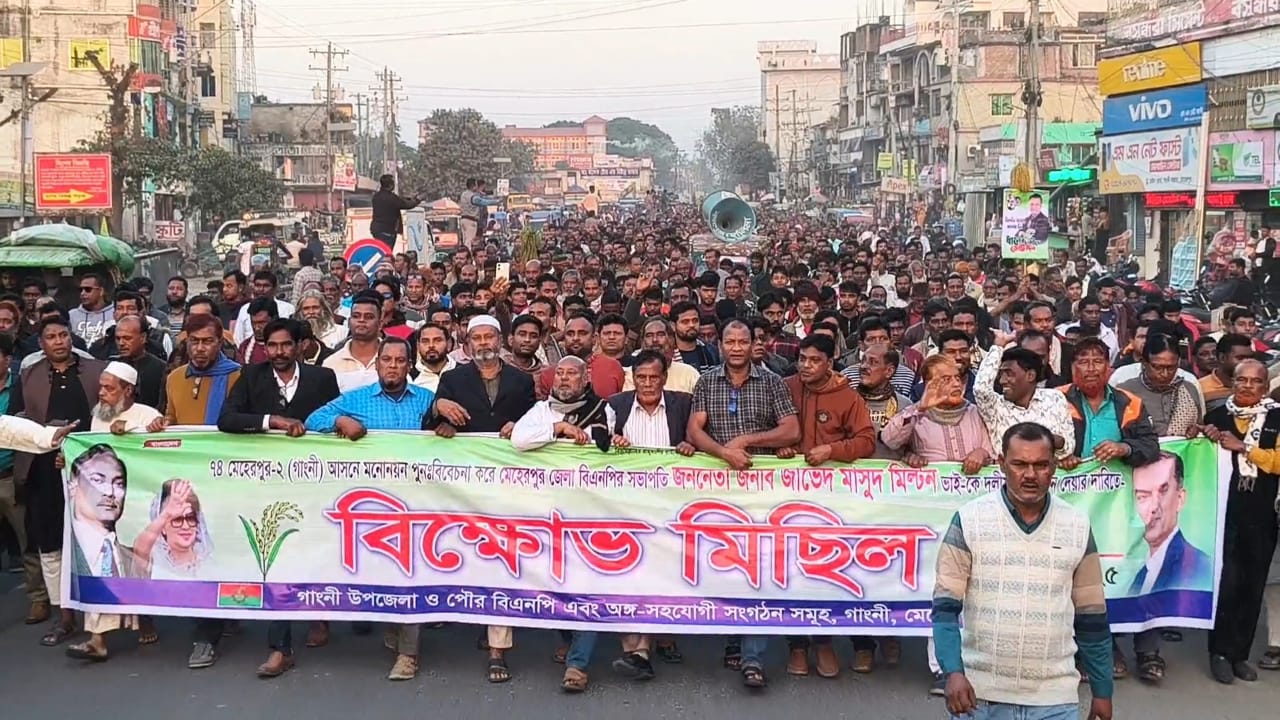 ত্রয়োদশ জাতীয় সংসদ নির্বাচনে মনোনয়ন পুনর্বিবেচনার দাবিতে মেহেরপুরের গাংনীতে বিক্ষোভ মিছিল করেছে বিএনপি। আজ বৃহস্পতিবার বিকেলে গাংনী উপজেলা ও পৌর বিএনপির উদ্যোগে এ বিক্ষোভ মিছিল বের হয়।