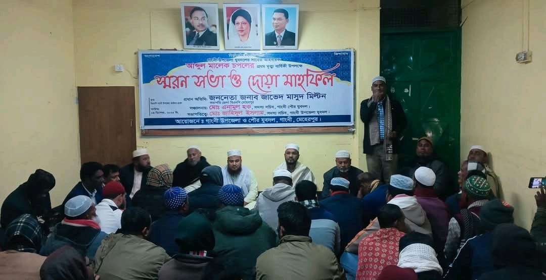 মেহেরপুরের গাংনীর যুবদল নেতা আব্দুল মালেক চপলের প্রথম মৃত্যুবার্ষিকী উপলক্ষে দোয়া মাহফিল অনুষ্ঠিত হয়েছে।