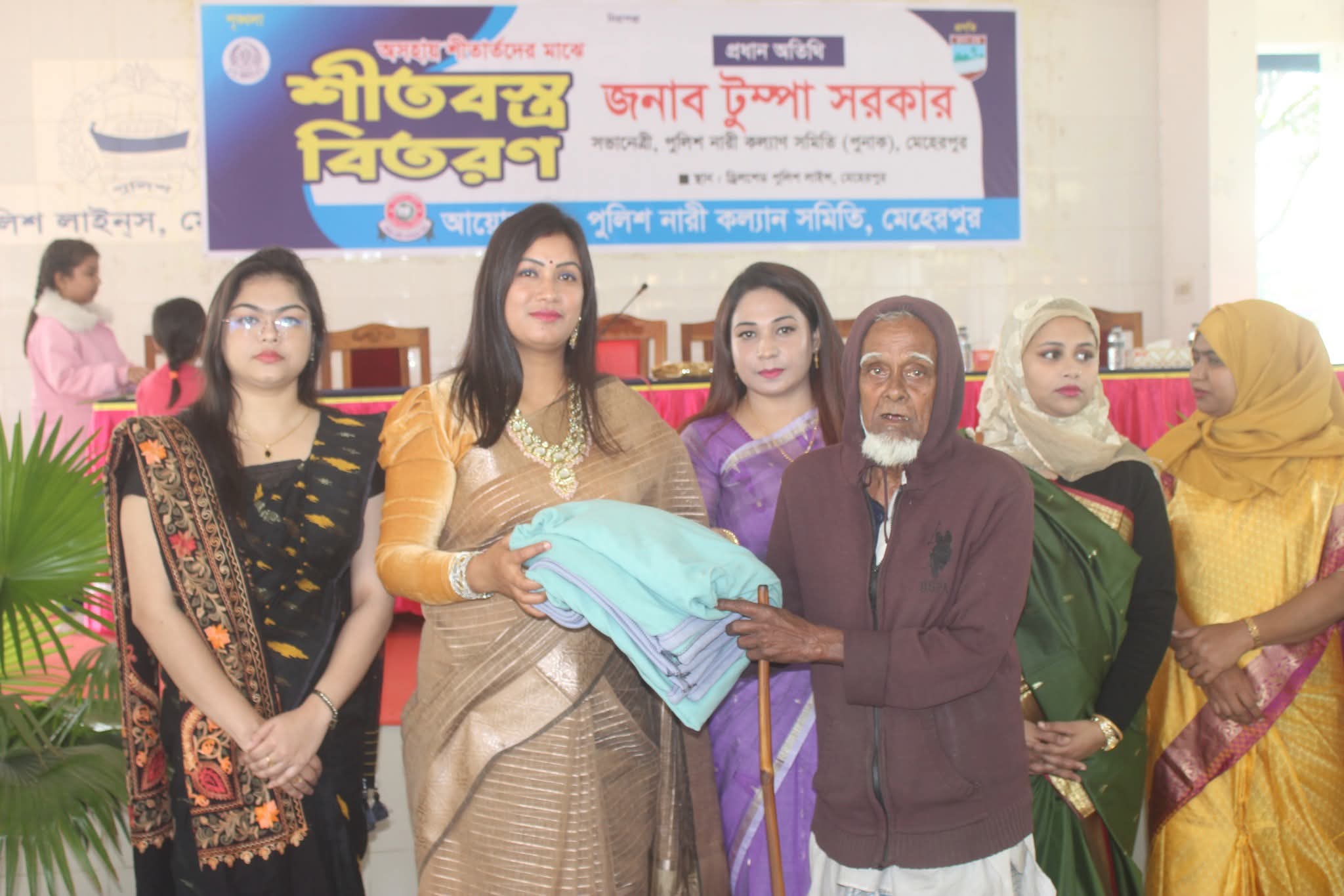 মেহেরপুর জেলার অসহায় ও শীতার্ত মানুষের পাশে দাঁড়িয়েছে পুলিশ নারী কল্যাণ সমিতি (পুনাক)। শনিবার (১৭ জানুয়ারি) পুলিশ লাইন্স ড্রিলশেডে শীতার্ত মানুষের মাঝে শীতবস্ত্র বিতরণ করা হয়।