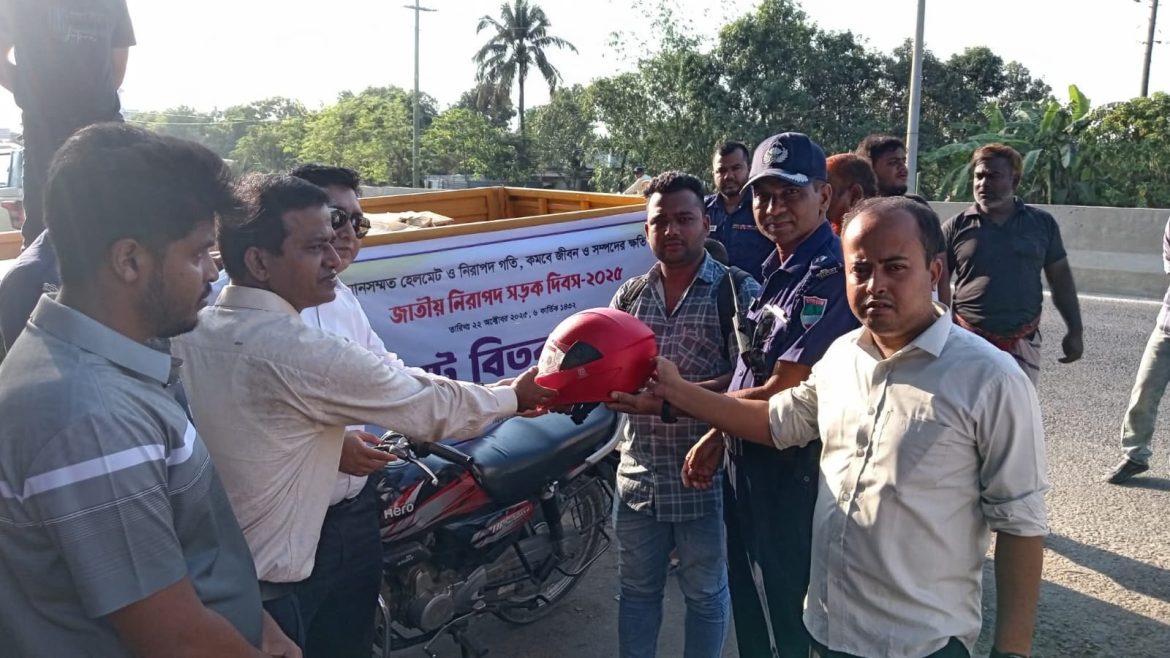 অনুষ্ঠান শেষে মোটরসাইকেল চালকদের মাঝে মানসম্মত হেলমেট বিতরণ করা হয়।