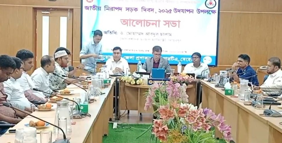 মেহেরপুরে জাতীয় নিরাপদ সড়ক দিবস উপলক্ষে আলোচনা সভা ও র‍্যালি অনুষ্ঠিত হয়েছে। বুধবার সকালে জেলা প্রশাসকের সম্মেলন কক্ষে এ আলোচনা সভা অনুষ্ঠিত হয়।