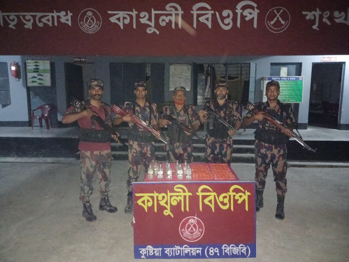 অপরদিকে, উপজেলার কাথুলী সীমান্ত এলাকায় পৃথক আরেকটি অভিযানে ৩ লাখ ১৩ হাজার ৫০০ টাকা মূল্যের ৯ বোতল ভারতীয় মদ এবং ১ হাজার পিস সিপ্রোহেপ্টাডিন ট্যাবলেট উদ্ধার করা হয়। এসব মালামালের কোনো মালিকানা পাওয়া যায়নি বলে জানিয়েছে বিজিবি।