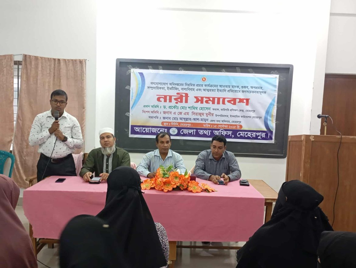 মেহেরপুর জেলা তথ্য অফিসের আয়োজনে এক নারী সমাবেশ অনুষ্ঠিত হয়েছে।সোমবার বেলা ৩টার দিকে মেহেরপুর জেলা কারিগরি প্রশিক্ষণ কেন্দ্রে (টিটিসি) এ সমাবেশ অনুষ্ঠিত হয়।
