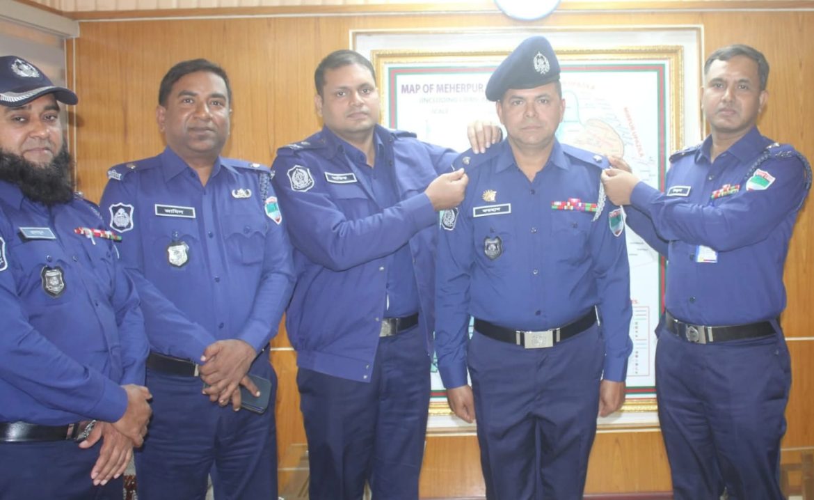 মেহেরপুর জেলা পুলিশে কর্মরত তিনজন পুলিশ কর্মকর্তাকে পদোন্নতি দিয়ে নতুন র্যাংক ব্যাজ পরিয়ে দেওয়া হয়েছে। রবিবার দুপুরে পুলিশ সুপারের কার্যালয়ে অনুষ্ঠিত এই আনুষ্ঠানিক অনুষ্ঠানে পদোন্নতিপ্রাপ্ত কর্মকর্তারা অংশ নেন।
