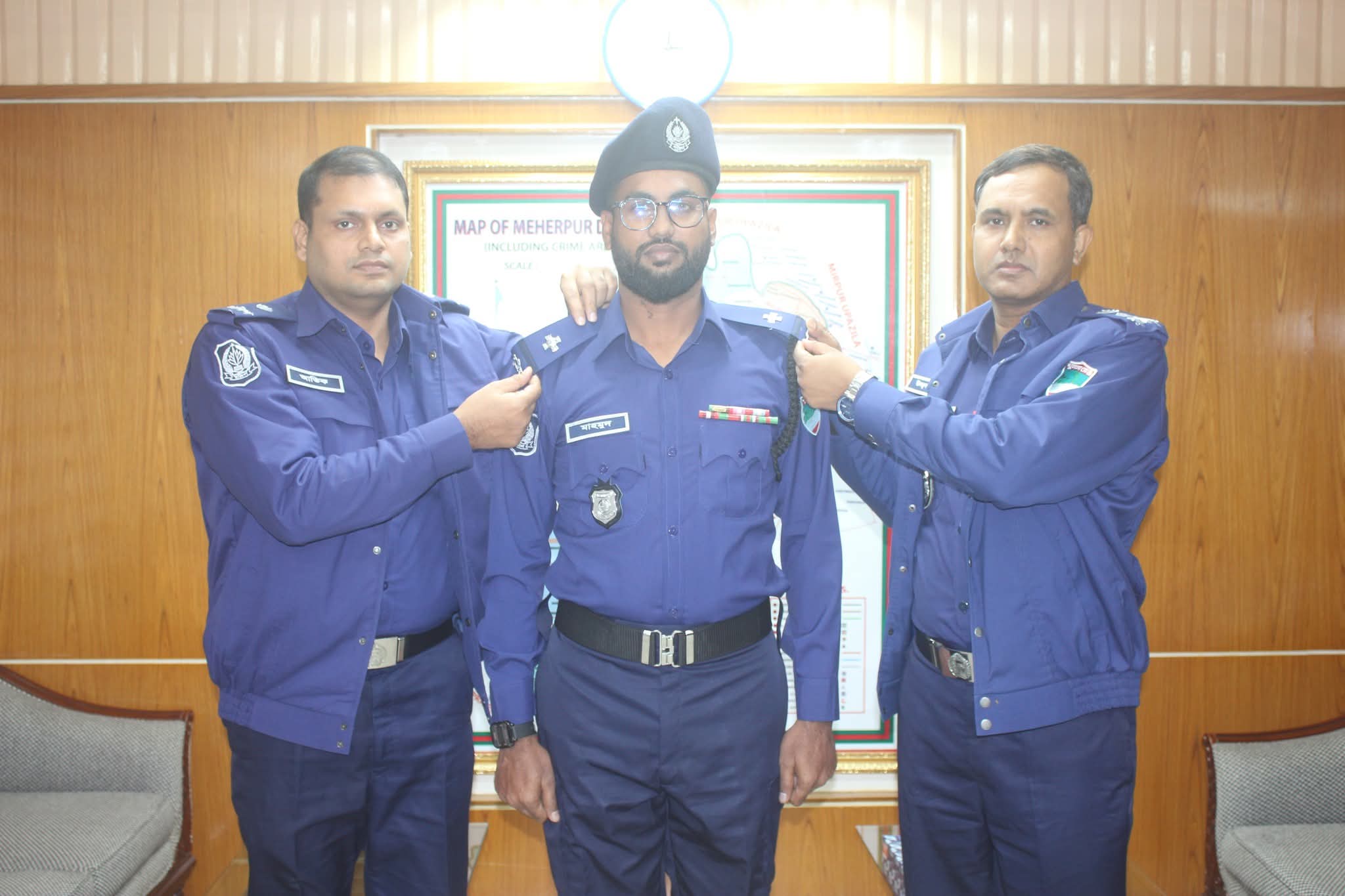 মেহেরপুরে  পদোন্নতি প্রাপ্ত পুলিশ সদস্যদের র‌্যাংক ব্যাজ পরানো হয়েছে