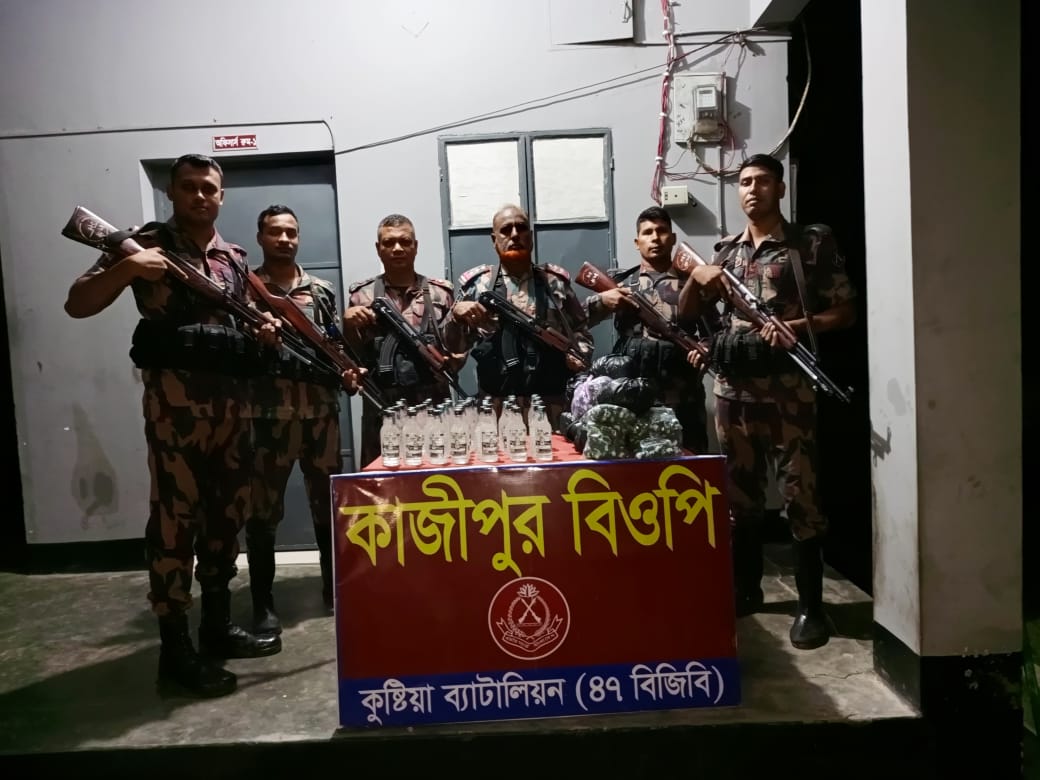 বিজিবি সূত্রে জানা গেছে, কাজিপুর বিওপির দায়িত্বপূর্ণ এলাকার সীমান্ত পিলার ১৪৫/২-এস হতে প্রায় ২০০ গজ বাংলাদেশের অভ্যন্তরে কাজীপুর মন্ডলপাড়া নামক স্থানে জেসিও ৯৪৩৫ সুবেদার মোঃ শাহাবুদ্দিনের নেতৃত্বে বিশেষ এই অভিযান পরিচালিত হয়। অভিযানে মালিকবিহীন অবস্থায় ভারতীয় ৫৬ বোতল মদ ও ২ হাজার ৭’শ পিস চকলেট বাজি উদ্ধার করা হয়। যার আনুমানিক বাজার মূল্য ১ লাখ ৫১ হাজার ৫০০ টাকা বলে উল্লেখ করেছে বিজিবি।