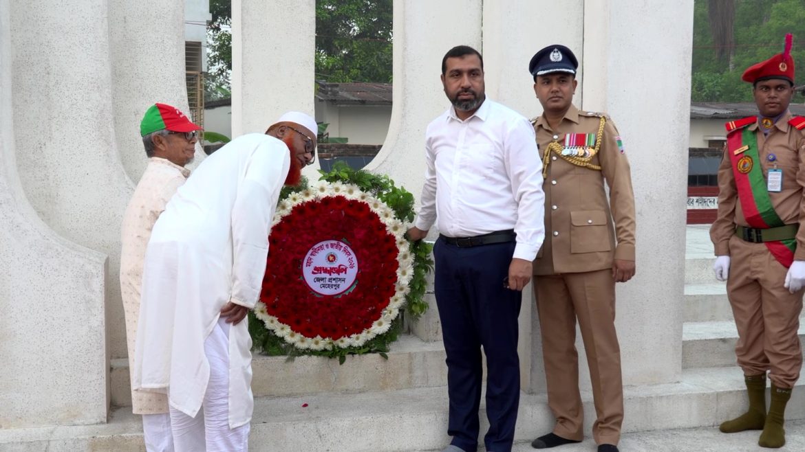 প্রথমে জেলা প্রশাসনের পক্ষ থেকে শহীদদের প্রতি শ্রদ্ধা নিবেদন করেন জেলা প্রশাসক ড. সৈয়দ এনামুল কবির ও মেহেরপুর -১ আসনের সংসদ সদস্য তাজ উদ্দিন খান । এরপর আইনশৃঙ্খলা বাহিনীর পক্ষ থেকে পুলিশ সুপার উজ্জ্বল কুমার রায় শহীদ স্মৃতিসৌধে পুষ্পস্তবক অর্পণ করেন।পর্যায়ক্রমে মুক্তিযোদ্ধা কমান্ড ইউনিট, সিভিল সার্জন অফিস, মেহেরপুর প্রেসক্লাব, বিভিন্ন শিক্ষা প্রতিষ্ঠান, সামাজিক ও সাংস্কৃতিক সংগঠনসহ জেলার নানা শ্রেণি-পেশার মানুষ শহীদদের প্রতি শ্রদ্ধা নিবেদন করেন। শ্রদ্ধা নিবেদন শেষে শহীদদের আত্মার মাগফিরাত কামনায় দোয়া ও মোনাজাত অনুষ্ঠিত হয়। দিবসটি উপলক্ষে জেলা প্রশাসনের উদ্যোগে দিনব্যাপী নানা কর্মসূচি রয়েছে।
