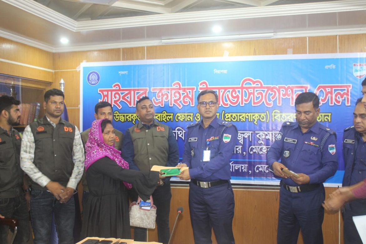 মেহেরপুরে সাইবার ক্রাইম ইনভেস্টিগেশন সেলের উদ্যোগে উদ্ধারকৃত মোবাইল ও অর্থ হস্তান্তর