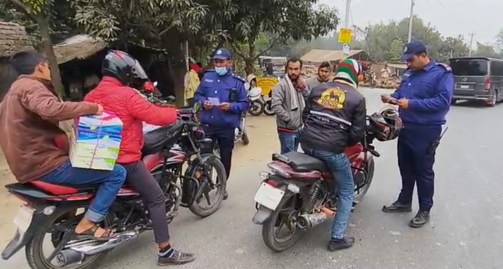 সোমবার দুপুরের দিকে মেহেরপুর–কুষ্টিয়া সড়কের গাড়াডোব এলাকায় এ অভিযান পরিচালনা করা হয়। অভিযানে নেতৃত্ব দেন ট্রাফিক পুলিশের সার্জেন্ট মোজাফফর হোসেন। অভিযানকালে চলাচলরত মোটরসাইকেলের কাগজপত্র যাচাই করা হয়। এ সময় বৈধ কাগজপত্র না থাকায় ৪টি মোটরসাইকেল আটক করা হয় এবং সংশ্লিষ্ট ৪ জন মালিকের বিরুদ্ধে মামলা দায়ের করা হয়। আইনশৃঙ্খলা রক্ষা ও সড়ক নিরাপত্তা নিশ্চিত করতে এ ধরনের যৌথ অভিযান অব্যাহত থাকবে বলে সংশ্লিষ্টরা জানান।