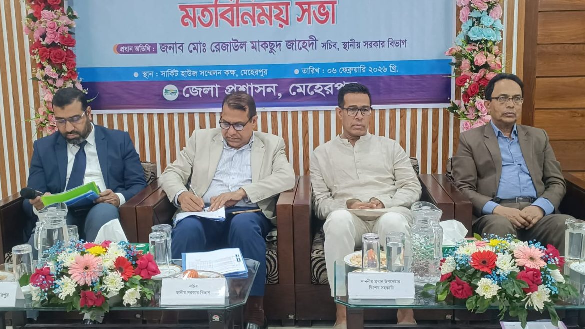 Home » মেহেরপুরে স্থানীয় সরকার বিভাগের কর্মকর্তাদের সঙ্গে সচিবের মতবিনিময় সভা