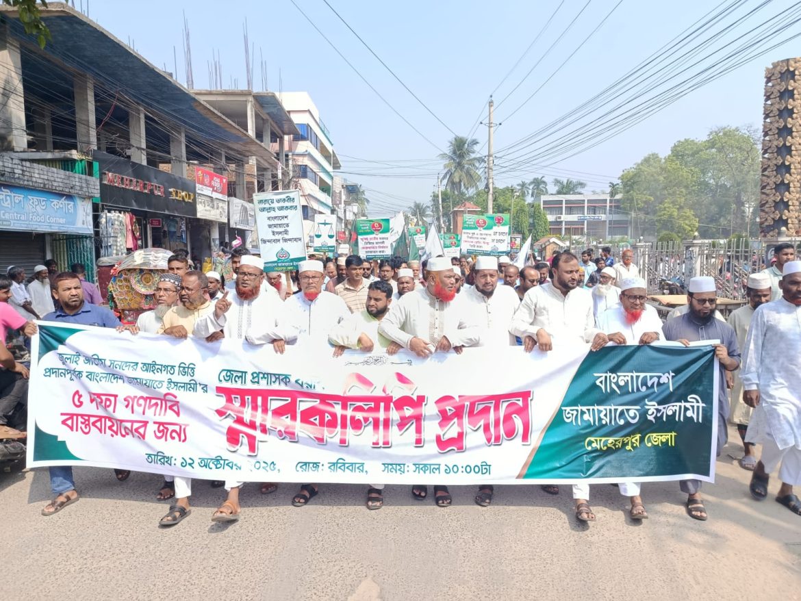 মেহেরপুরে ৫ দফা দাবীতে জেলা জামায়াতের স্মারক লিপি প্রদান