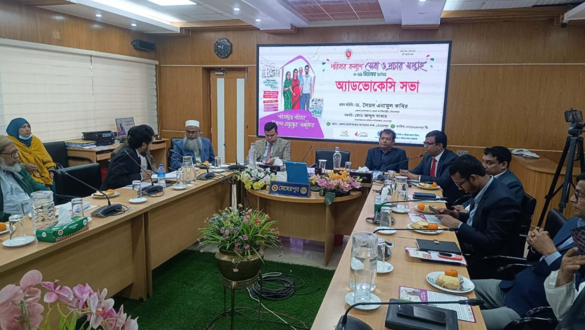 মেহেরপুর জেলা স্বাস্থ্য ও পরিবার পরিকল্পনা বিভাগের উদ্যোগে পরিবার কল্যাণ সেবা ও প্রচার সপ্তাহ উপলক্ষে অ্যাডভোকেসি সভার আয়োজন করা হয়। রবিবার দুপুরের দিকে মেহেরপুর জেলা প্রশাসকের সম্মেলন কক্ষে এ আলোচনা সভা অনুষ্ঠিত হয়। মেহেরপুর জেলা স্বাস্থ্য ও পরিবার পরিকল্পনা বিভাগের উপ পরিচালক আব্দুস সাত্তার এর সভাপতিত্বে অ্যাডভোকেসি সভায় বক্তব্য রাখেন অতিরিক্ত জেলা প্রশাসক (সার্বিক) মোঃ তরিকুল ইসলাম, সিভিল সার্জন ডা, আবু সাঈদ, মেহেরপুর সদর উপজেলা নির্বাহী অফিসার মোঃ খায়রুল ইসলাম,ডা. রফিকুল ইসলাম, মেহেরপুর মা ও শিশু কল্যান কেন্দ্রের মেডিকেল অফিসার ডা. রুমানা হেলালী জুশি, জেলা তথ্য অফিসার আব্দুল্লাহ আল মামুন। এডভোকেট সভায় অন্যদের মধ্যে জেলা ইসলামিক ফাউন্ডেশনের উপ পরিচালক সিরাজুম মনির, মহিলা বিষয়ক অধিদপ্তরের উপ পরিচালক নাসিমা খাতুন, জেলা প্রাণিসম্পদ কর্মকর্তা তোফাজ্জল হোসেন, জেলা সমবায় কর্মকর্তা এনামুল হক, ভারপ্রাপ্ত জেলা শিক্ষা অফিসার আব্দুর রহিম, প্রাথমিক শিক্ষা অফিসার সুকুমার রায় প্রমুখ উপস্থিত ছিলেন