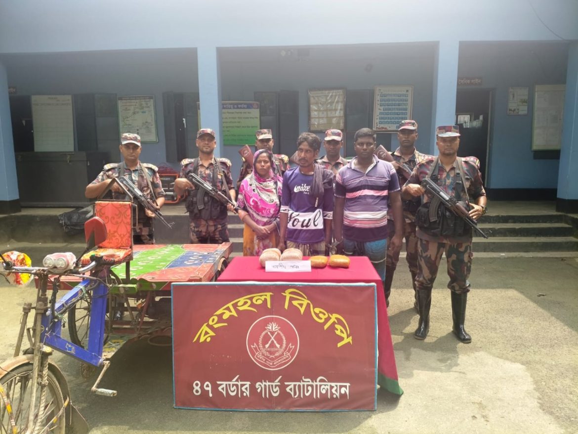 শনিবার সকাল ১১টার দিকে এক প্রেস বিজ্ঞপ্তির মাধ্যমে বিষয়টি নিশ্চিত করে কুষ্টিয়া ব্যাটালিয়ন (৪৭ বিজিবি) এর অধিনায়ক লেঃ কর্নেল মোঃ মাহবুব মুর্শেদ রহমান পিএসসি জানান ভোর সাড়ে ৪টার দিকে রংমহল বিওপি’র দায়িত্বপূর্ণ এলাকায় সীমান্ত পিলার ১৩৭/৬-এস হতে প্রায় ২৫০ গজ ভেতরে খাসমহল নামক স্থানে নম্বর-৬৭৫৮০ হাবিলদার মোঃ মোখলেছুর রহমানের নেতৃত্বে একটি বিশেষ অভিযান পরিচালনা করা হয়। এসময় ভারতীয় ৩ কেজি গাঁজা ও একটি ব্যাটারি চালিত ভ্যানসহ তাদের আটক করা হয়। জব্দকৃত গাঁজা ও ভ্যানের আনুমানিক সিজার মূল্য দাঁড়িয়েছে ৯০ হাজার ৫০০ টাকা। আটক আসামিদের পরবর্তী আইনানুগ ব্যবস্থা গ্রহণের জন্য গাংনী থানায় হস্তান্তর করা হয়েছে।