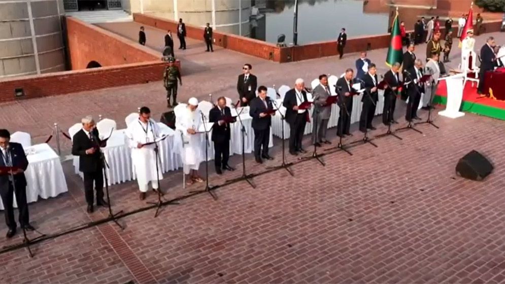 তারেক রহমান-এর নেতৃত্বে গঠিত নতুন সরকারের মন্ত্রিসভার ২৫ জন পূর্ণমন্ত্রী শপথ গ্রহণ করেছেন। মঙ্গলবার বিকাল ৪টার পর মো. সাহাবুদ্দিন তাঁদের শপথবাক্য পাঠ করান। রাজধানীর জাতীয় সংসদ ভবন এর দক্ষিণ প্লাজায় অনুষ্ঠিত হয় এ শপথ অনুষ্ঠান। শপথ অনুষ্ঠানে নবনির্বাচিত সংসদ সদস্য, অন্তর্বর্তীকালীন সরকারের প্রতিনিধি এবং বিভিন্ন শ্রেণি-পেশার আমন্ত্রিত অতিথিরা উপস্থিত ছিলেন। এছাড়া ভারত, পাকিস্তান, নেপালসহ দক্ষিণ এশিয়ার বিভিন্ন দেশের নেতারাও অনুষ্ঠানে যোগ দেন। শেখ হাসিনাুএর নেতৃত্বাধীন বাংলাদেশ আওয়ামী লীগ সরকার পতনের পর অন্তর্বর্তী সরকার দায়িত্ব গ্রহণ করে। সেই অন্তর্বর্তী সরকারের প্রায় ১৮ মাস পর জাতীয় নির্বাচনের মাধ্যমে নতুন এই সরকার গঠিত হলো। শপথ নেওয়া ২৫ মন্ত্রী হলেন— মির্জা ফখরুল ইসলাম আলমগীর, আমীর খসরু মাহমুদ চৌধুরী, সালাহউদ্দিন আহমদ, ইকবাল হাসান মাহমুদ, হাফিজ উদ্দিন আহমেদ, আবু জাফর মো. জাহিদ হোসেন, আব্দুল আউয়াল মিন্ট, ুকাজী শাহ মোফাজ্জল হোসেন কায়কোবাদ, মিজানুর রহমান মিনু, নিতাই রায় চৌধুরী, খন্দকার আব্দুল মুক্তাদিও, আরিফুল হক চৌধুরী, জহির উদ্দিন স্বপন, আফরোজা খানম রিতা, মো. শহীদ উদ্দিন চৌধুরী এ্যানি, আসাদুল হাবিব দুলু, মো. আসাদুজ্জামান, জাকারিয়া তাহের, দীপেন দেওয়ান, আ ন ম এহসানুল হক মিলন, সরদার মো. সাখাওয়াত হোসেন. ফকির মাহবুব আনাম, শেখ রবিউল আলম, মোহাম্মদ আমিন উর রশীদ, খলিলুর রহমান।