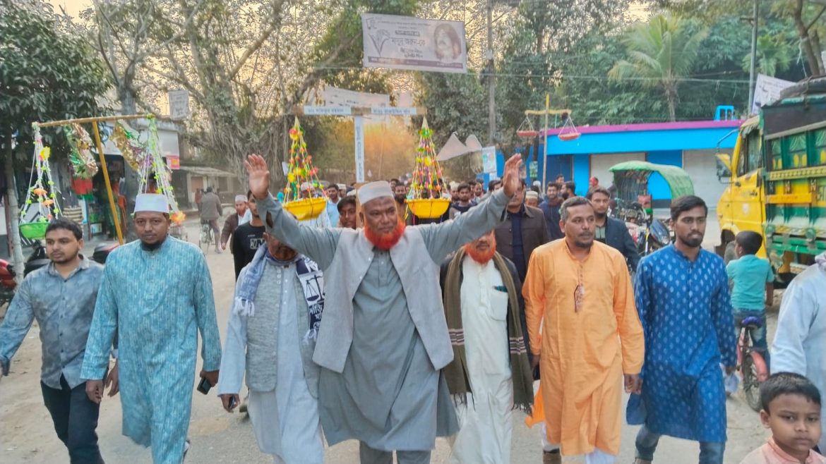 মেহেরপুরের পিরোজপুর গ্রামে জামায়াত প্রার্থী মাওলানা তাজউদ্দিন খানের নির্বাচনী প্রচারণা ও সমাবেশ